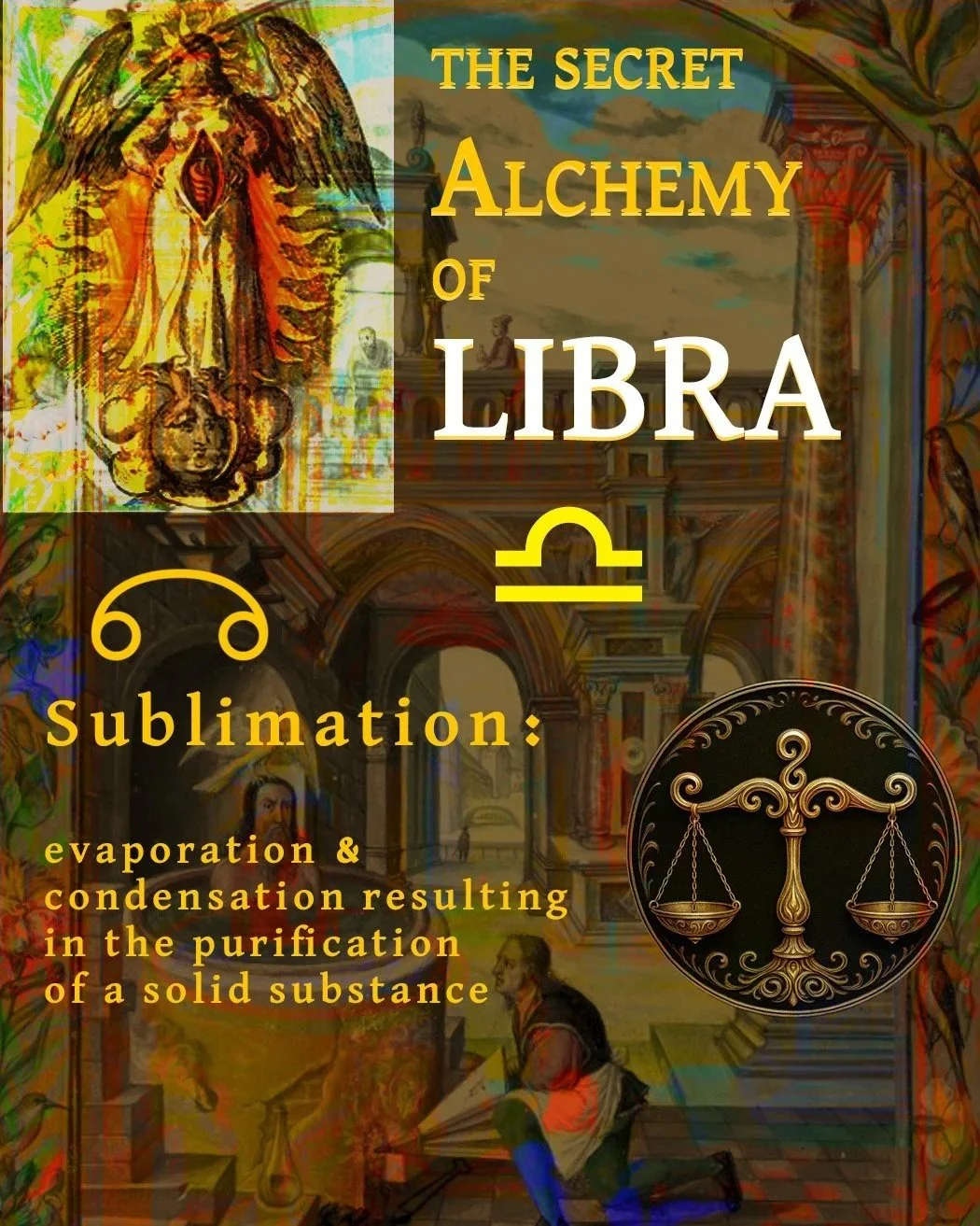 The Alchemical Operation assigned to Virgo is Sublimation. Sublimation is best understood as a distilling process, except with solids. It can be is a process where a material mass is purified to a higher state. It can be expressed in two main ways, first as a material substance turning to gas without a liquid state in between. An example would be dry ice, where the solid turns to a gas and skips the liquid phase, or some Air fresheners, that have to be replaced when the solid mass seemingly evaporates. It can also take place during heating, when a solid mass does turn to liquid, but the steam or smoke produces a powder like substance, which when collected is considered to be the original matter sublimed.