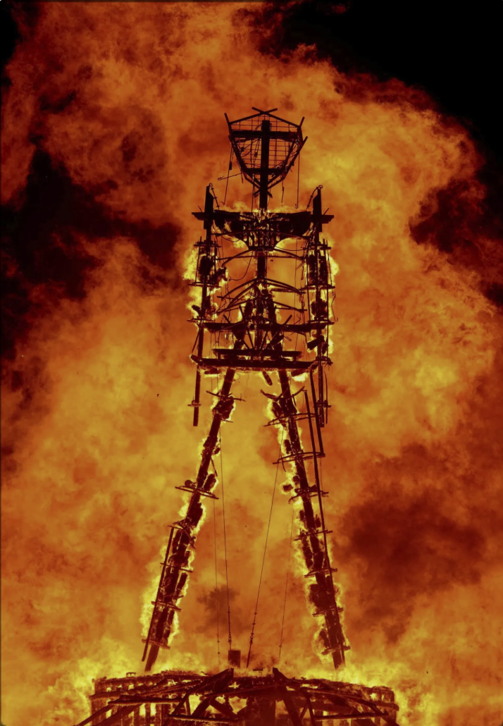 This tradition would seem to continue today with the Burning Man festivals that occur in Nevada’s Black Rock desert every year, whose culmination involves participants burning a huge wooden effigy of a man. The symbolism of the Burning Man gathering could be regarded as a large-scale enactment of Calcination and its correspondence with the King (or Emperor) as the fiery principle of Will and Ego. Participants construct and ultimately burn “the Man” as a ritualized destruction of form that mirrors Calcination’s purpose, to reduce the Ego and false self to ash so that its essential core may be revealed, often at the same time as consciousness-expanding drugs are consumed.