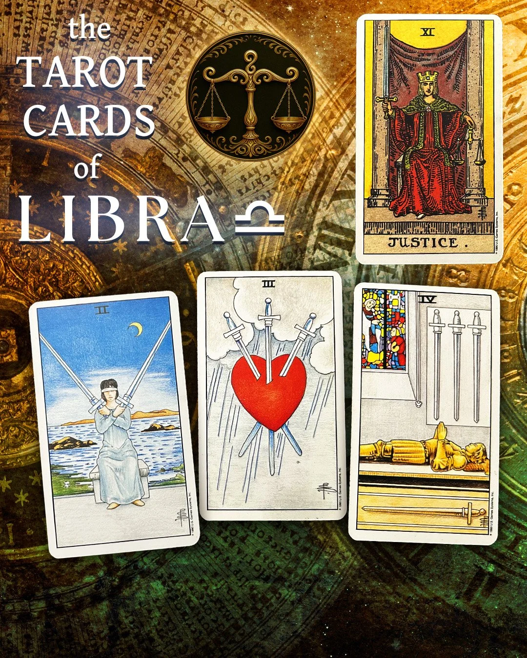 The Minor Arcana Cards of the Two, Three and Four of Swords have less obvious connections to the sign of Libra. Each Suit corresponds to an element, and the Suit of Swords corresponds to the element of Air, the intellectual or mental plane. Since Libra is an Air sign, it corresponds to the Suit of Swords.