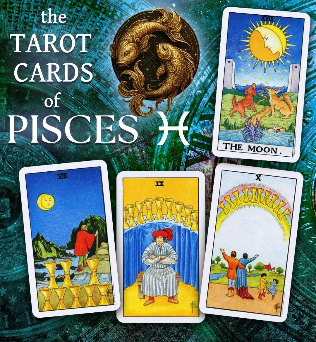 The Major Arcana Tarot Card allocated to the sign of Pisces is the Moon card. The general meaning of this card is subconscious realms, illusions, cycles & women’s cycles, changeability & unreliability.